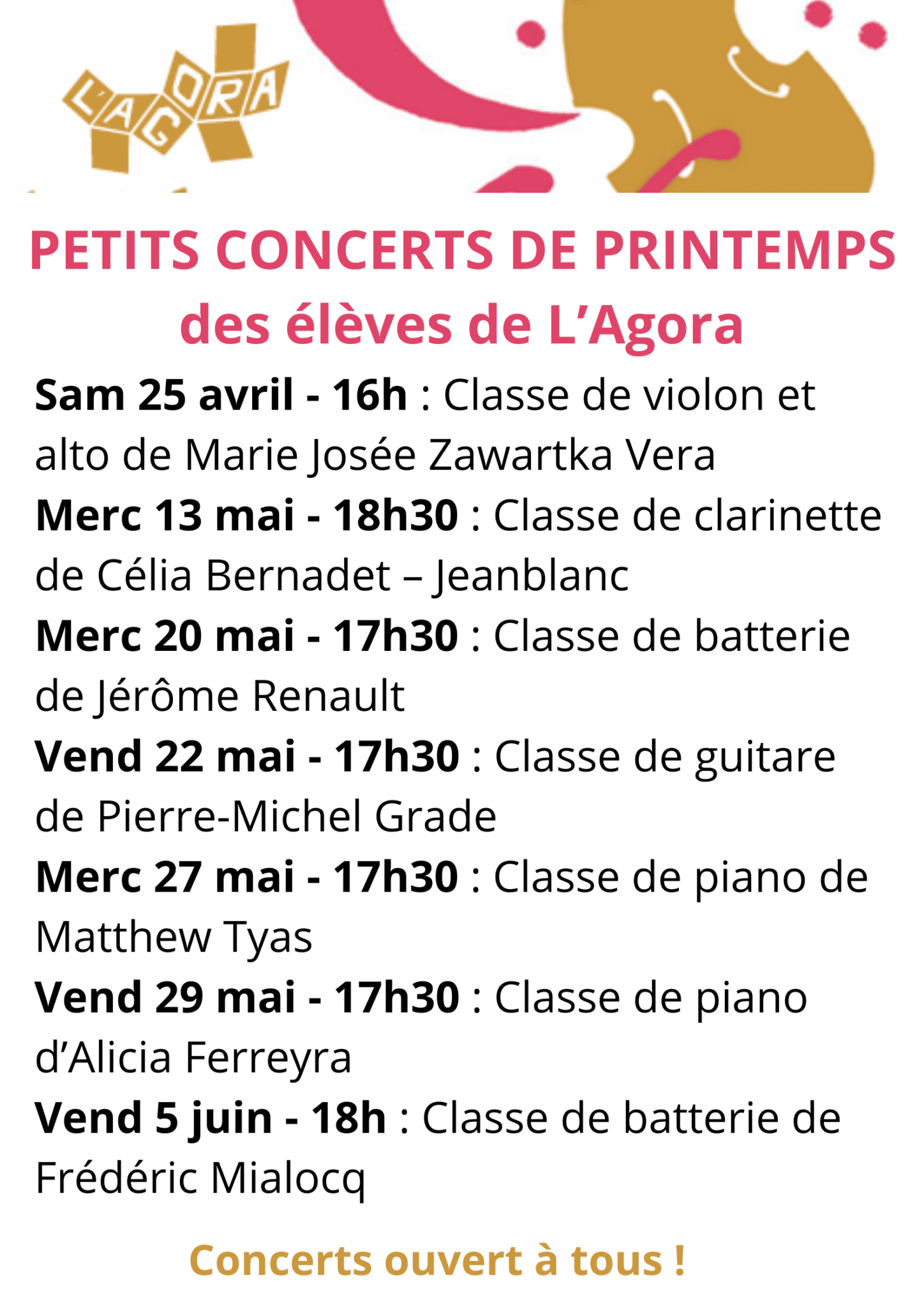 STAGE THEATRE : Du mardi 14 au vendredi 17 avril de 14 à 17h.ATELIER AQUARELLE : Lundi 13 avril de 14h30 à 16h30.ATELIER CARILLON : Jeudi 16 avril de 14h30 à 17h....